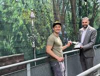 "Wie aus Farbe und einer freien Fläche in so kurzer Zeit ein solch beeindruckendes Werk entstehen kann, ist faszinierend", betont Hoteldirektor Bart Vaessen, der Tubuku vor allem wegen ihrer besonderen Art der Gestaltung engagiert hat. Denn Jaroslaw "Jarek" Masztalerz und Alex Weigandt, die sich hinter dem Namen Tubuku verbergen, beziehen in ihrer Gestaltung stets die Umgebung mit ein. So scheint sich die gerade üppig blühende Gartenanlage vor den Fenstern des Hotels entlang der nun gestalteten Seitenwand bis in den neuen Fitnessraum fortzusetzen, wo sie in zarten Farbnuancen abstrakt ausläuft. "Für die Gestaltung haben wir keine Spraydosen genutzt, sondern Acrylfarbe, die wir mit Streichrollen aufgebracht haben", erklärt Alex Weigandt, der wie Jarek Masztalerz Kommunikationsdesign studiert. "Bei unserem Design ist das Besondere, dass wir Mischtechniken verwenden. Denn indem wir die Farbe noch nass verreiben oder mit der Streichrolle entlangziehen, erzielen wir einzigartige Wirkungen." Bei der Gestaltung der großen Wandfläche im Hotel Krefelder Hof haben die beiden Designer, die sich selbst nicht als Künstler bezeichnen möchten, erst einmal die Umgebung auf sich einwirken lassen. "Die Struktur der Wände und die Art wie das Licht darauf fällt, verleihen der Fläche schon eine Lebendigkeit und Struktur, die wir dann mit unserem Design aufgegriffen haben", erläutert Jarek Masztalerz den Entstehungsprozess. Entstanden ist nun ein Naturszenerie mit vielen feinen Schattierungen, voller Farbintensität und Dynamik, die in eine ungewöhnliche optische Beziehung zu den neuen modernen Fitnessgeräten eingeht. Der Bereich mit seinen Cardio- und Kraftgeräten kann nun von den Hotelgästen genutzt werden, um ihren Körper in einem "natürlichen" Ambiente mit Blick in den Garten in Schwung zu bringen.