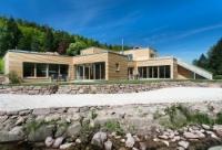 Die Unterkunft Schwarzwaldstrand ist in vielerlei Hinsicht bemerkenswert: Der Massivholzbau steht auf einem fast dreieckigen Grundstück, welches sich - idyllisch gelegen - am Ortsrand von Bad Herrenalb befindet. Der gesamte Bau ist nach ökologischen Gesichtspunkten erstellt und wird an seiner Längsseite vom Flüsschen Alb tangiert. Das Flussufer ist rund 50 Meter lang und wurde liebevoll umgestaltet, tatsächlich findet sich hier ein wunderbarer Sandstrand, der zum Verweilen einlädt. Drei Wohneinheiten, zwei im Erdgeschoss und eines im Obergeschoss, sind das Herzstück des Feriendomizils. Die Wohnungen sind mit 75 Quadratmetern geräumig ausgebaut, eigenständig, jedoch durch einen Vorraum miteinander verbunden, um gemeinsame Feiern oder Treffen zu ermöglichen. Zwei Schlafzimmer sind in jeder Wohnung ebenso Standard wie eine große Einheit aus Wohn-, Ess- und Kochgelegenheit. Die Terrassen sind südlich ausgerichtet und ermöglichen einen direkten Blick auf Fluss und Wald. Die Wohnungen selbst wurden geschmackvoll gestaltet und bezaubern durch ihren Kontrast zwischen weiß lasierten Massivholzplatten und dunklen Steinböden.