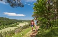 Im Herzen des Freistaates liegt der Bayerische Jura, benannt nach den Ausläufern des gleichnamigen europäischen Gebirgszugs. Und dort, südöstlich von Nürnberg, ist mit dem Lauterachtal die Bayerische Toskana zu finden. In diesem besonderen Kleinod - vor allem für Wanderer und Zweiradfans - im Amberg-Sulzbacher Land sind die duftenden Wacholderheiden, ein Wahrzeichen des Bayerischen Jura, besonders ausgeprägt. Sie bieten seltenen Tier- sowie Pflanzenarten ein Zuhause und haben einen enormen Erholungswert für Naturfreunde. Wie Zypressen ragen die schlanken Baumsäulen des Wacholders in den Himmel. Der Wacholderwanderweg gehört zu den schönsten Touren im Bayerischen Jura, ist etwa 31 Kilometer lang und verläuft in zwei Etappen von Schmidmühlen bis Kastl. Der Wanderer läuft häufig direkt durch die Wacholderheide und wird begleitet vom sanften Plätschern der Lauterach, einem ursprünglichen Jurabach. Die Qualitätswanderwege Jurasteig und Erzweg sowie der berühmte Jakobsweg führen ebenfalls durch das schöne Tal.