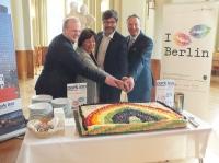 17. Mai 2017 - Heute hat Dr. Dirk Behrendt, Senator für Justiz, Verbraucherschutz und Antidiskriminierung, im Säulensaal des Berliner Rathaus, einen "Kiss Kiss Berlin - Regenbogenkuchen" angeschnitten. Der 90 x 35 cm große, leichte Sahne-Obst-Kuchen wurde MANEO vom Partner Park Inn by Radisson Berlin Alexanderplatz gestiftet. Diese Aktion fand anlässlich der jährlich von MANEO organisierten Kampagne "Kiss Kiss Berlin" statt. "Kiss Kiss Berlin" beginnt am 21. März (Internationaler Tag gegen Rassismus) und endet am 17. Mai (Internationaler Tag gegen Homophobie und Trans*phobie). Gemeinsam mit allen Unterstützerinnen und Unterstützern setzt MANEO damit ein sichtbares Zeichen gegen Rassismus, Homophobie, Trans*phobie, gegen jede Form von gruppenbezogener Menschenfeindlichkeit, damit für gesellschaftliche Vielfalt und Toleranz, für eine buntes und weltoffenes Berlin.