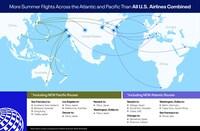 Im Sommer 2023 bleibt United Airlines auf Expansionskurs und wird insgesamt 114 Städte außerhalb der USA bedienen. Die Fluglinie reagiert damit auch auf die wachsende Nachfrage nach internationalen Flügen aus und in die USA. Insgesamt steigt das Flugvolumen von United auf diesen Strecken um rund 25 Prozent gegenüber dem Sommer 2022 an. Zudem offeriert United sowohl über den Atlantik als auch über den Pazifik mehr Flüge als jede andere Fluggesellschaft.