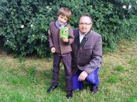 Vater und Sohn präsentieren gemeinsam erstelltes Wanderbuch
